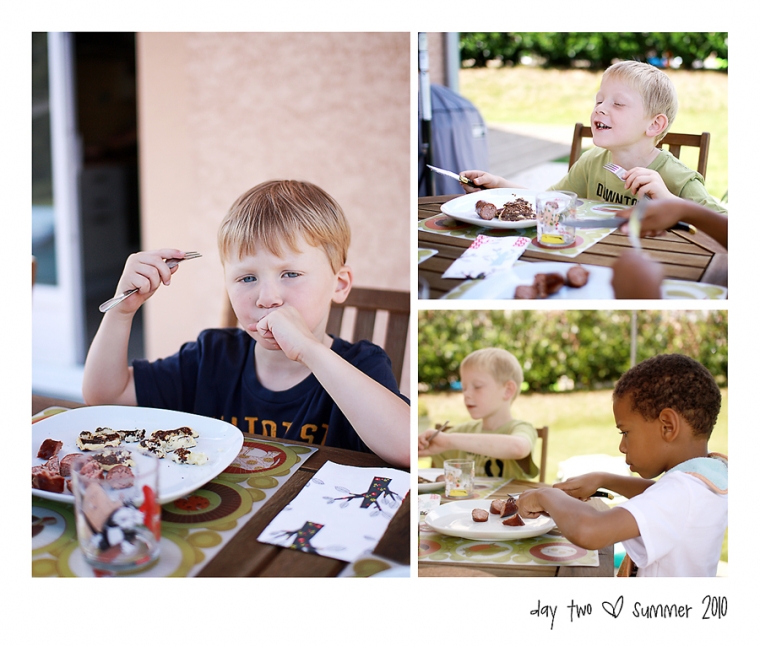 Matinée relax… Les enfants ont joué ensemble dans le jardin puis BBQ chez les bisontins… avec saucisses de Morteau et de Montbéliard et galettes de pommes de terre au menu ! Nous avons passé ensuite l’après-midi avec les 2 grands à Besançon. Visite du centre-ville avec nos reflex Sony pour Sandrine et Canon pour moi.