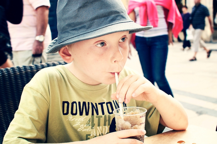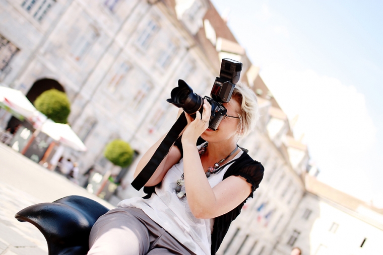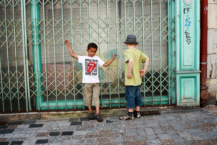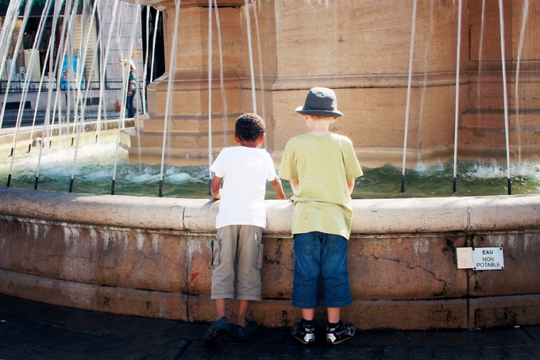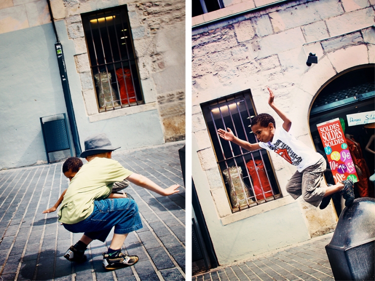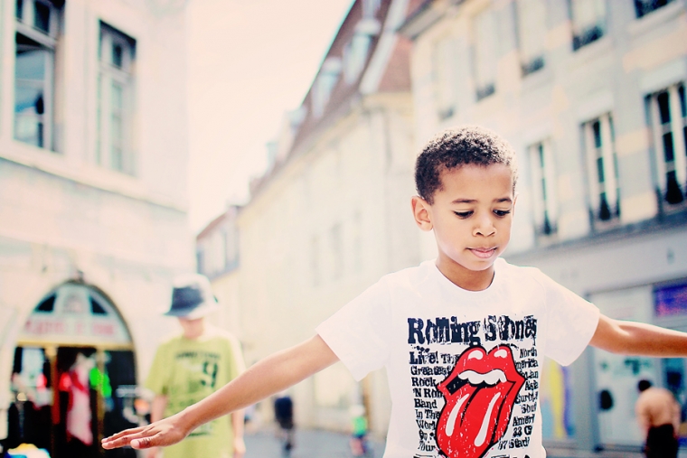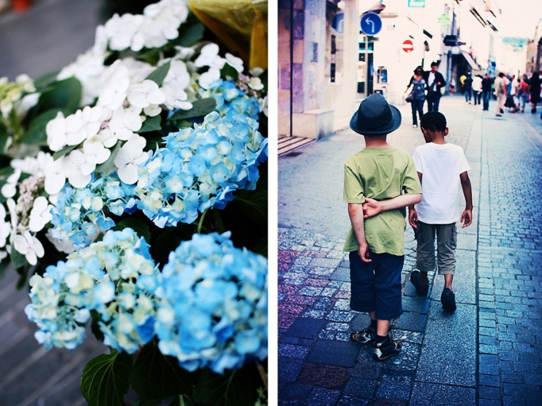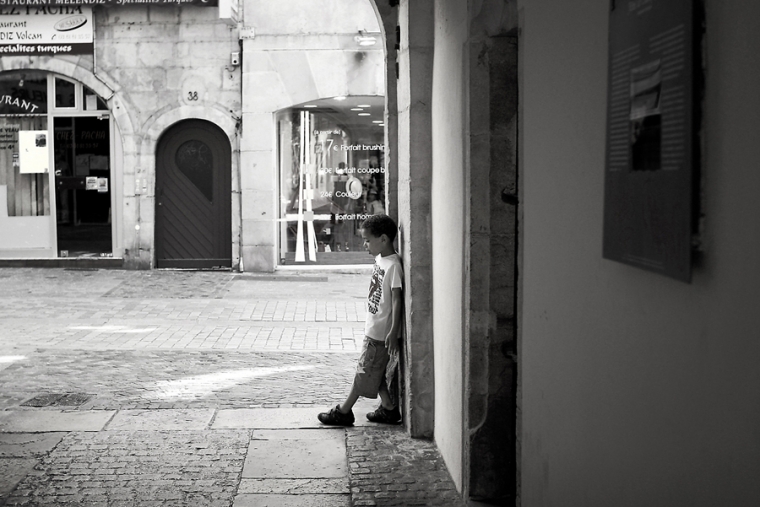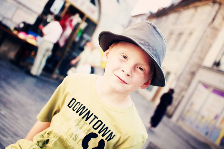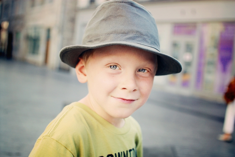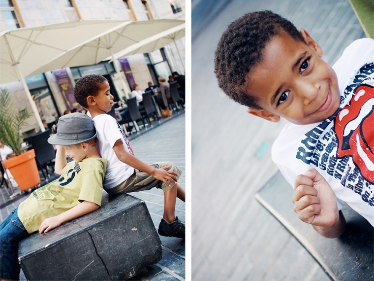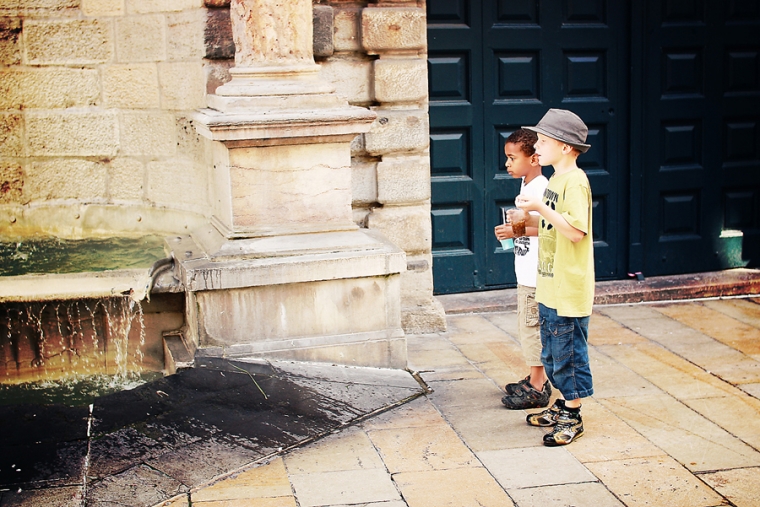 Nous étions à l’affût de la moindre porte ou arrière-cour pour shooter. Nous avons donc principalement mitraillé les garçons et un peu aussi le reste comme la statue de Victor Hugo, les toits de Besançon, la fontaine de la Place de la Révolution ! Cela ne nous ressemble pourtant pas d’avoir le pouce scotché sur le déclencheur :)… Ensuite, goûter à la Brioche Dorée avec un Nathan buvant un beuvrage digne de la fabrication d’un schtroumpf !