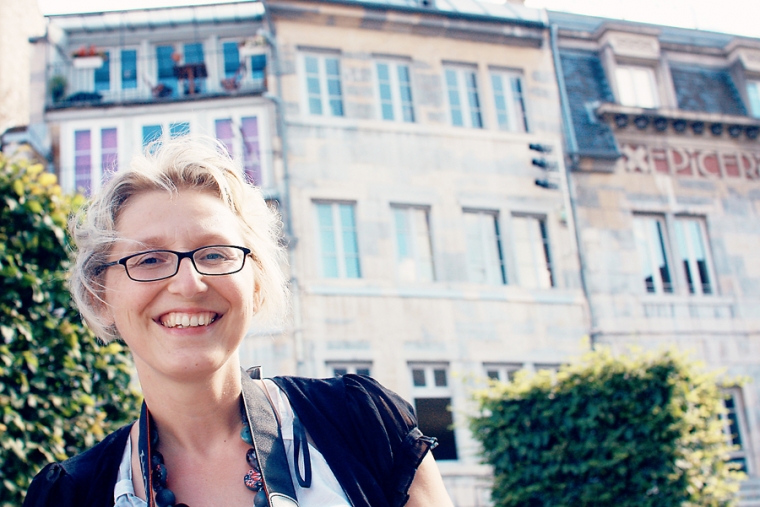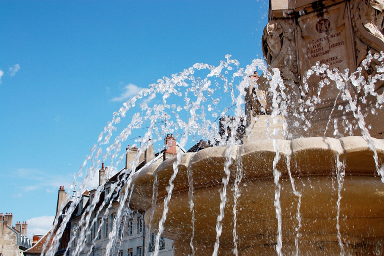 Place de la Révolution, sa fontaine et Sandrine qui elle n’est pas d’époque !